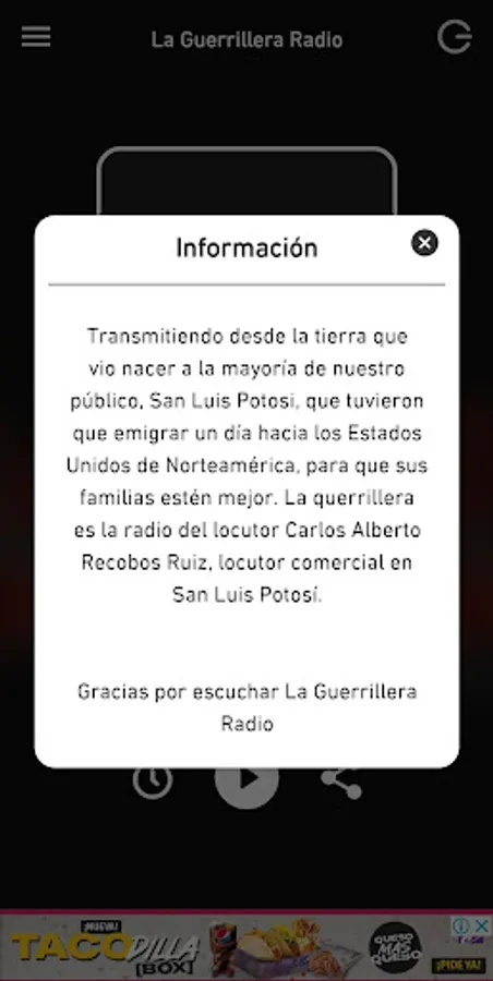 Look for us as radio la guerrillera or radio la guerrillera slp, you will also find us as radios of slp, remember that we are from the same state as la naranjera slp and la naranjera de san luis potosi, but we are radio la guerrillera san luis potosi, from the announcer Carlos Recobos, the radio of the godfather.