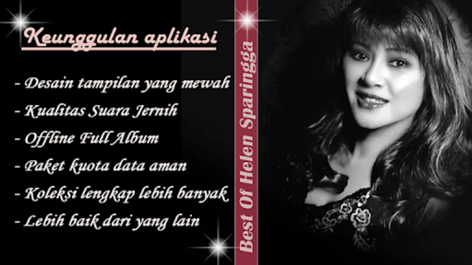 This application contains a collection of albums of pop songs by Helen Sparingga which can be listened to offline and downloaded for free.