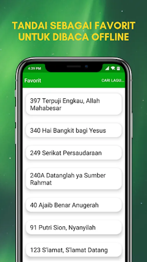 > Search facilities, both through song numbers, titles, and words and sentences in song lyrics to make it easier for you to find the song in question.