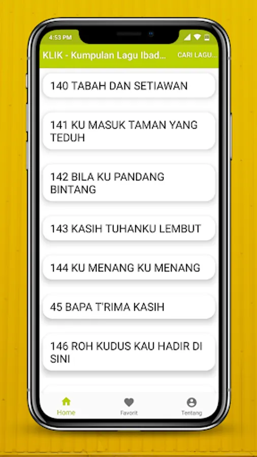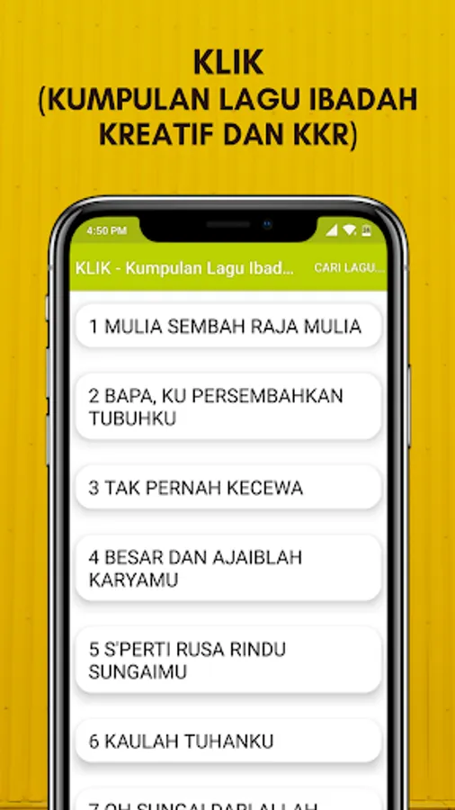 Application CLICK - Collection of Creative Worship Songs and KKR is an application that contains a collection of spiritual songs contained in KLIK song books that are commonly used in the services of the Evangelical Christian Church in Minahasa (GMIM) in North Sulawesi.