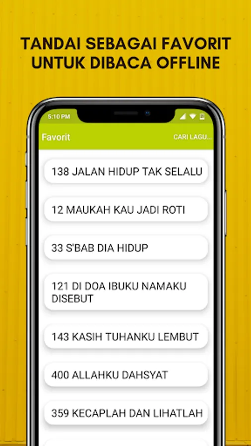 > Search facilities, both through song numbers, titles, and words and sentences in song lyrics to make it easier for you to find the song in question.