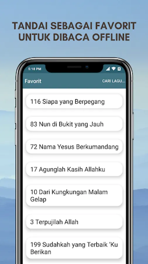 > Search facilities, both through song numbers, titles, and words and sentences in song lyrics to make it easier for you to find the song in question.