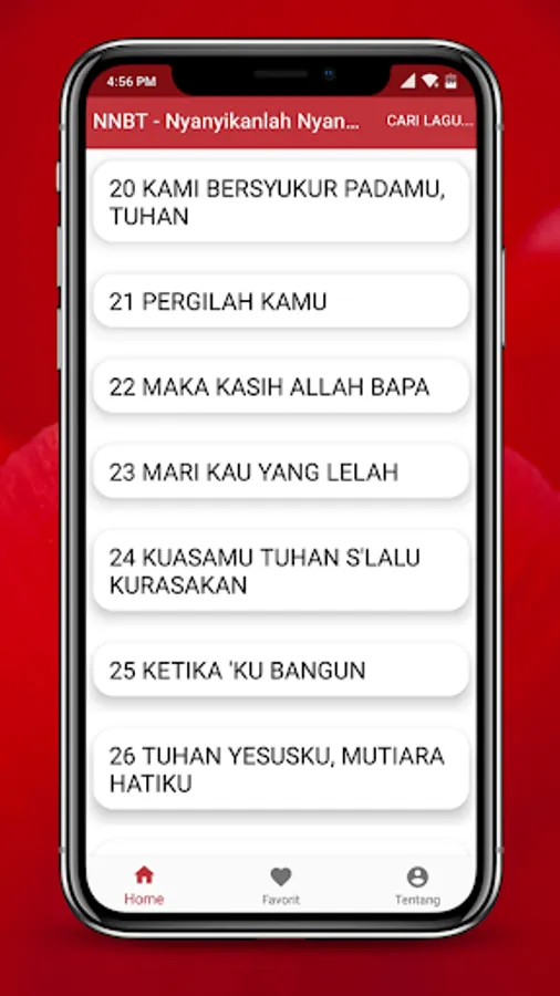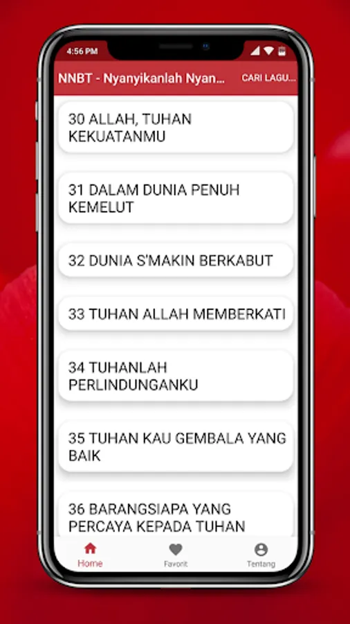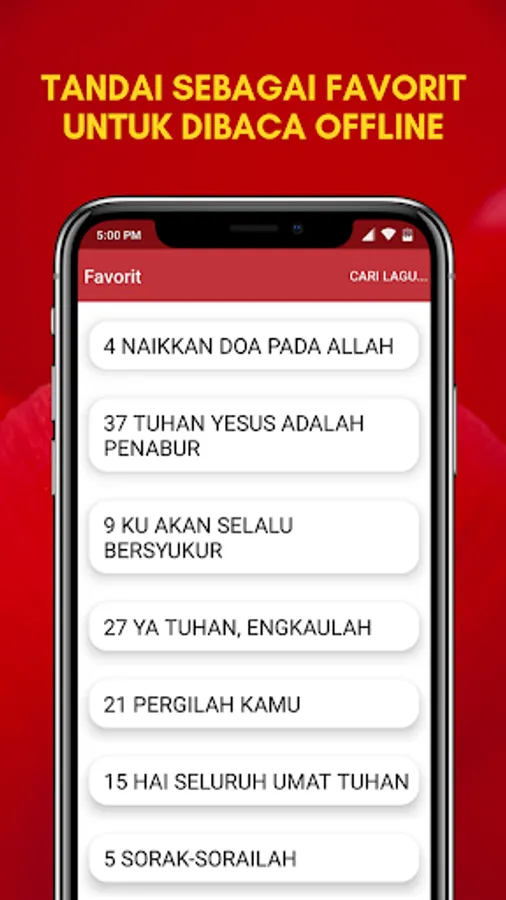 > Search facilities, both through song numbers, titles, and words and sentences in song lyrics to make it easier for you to find the song in question.