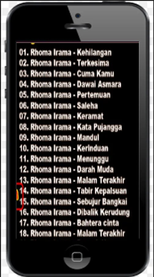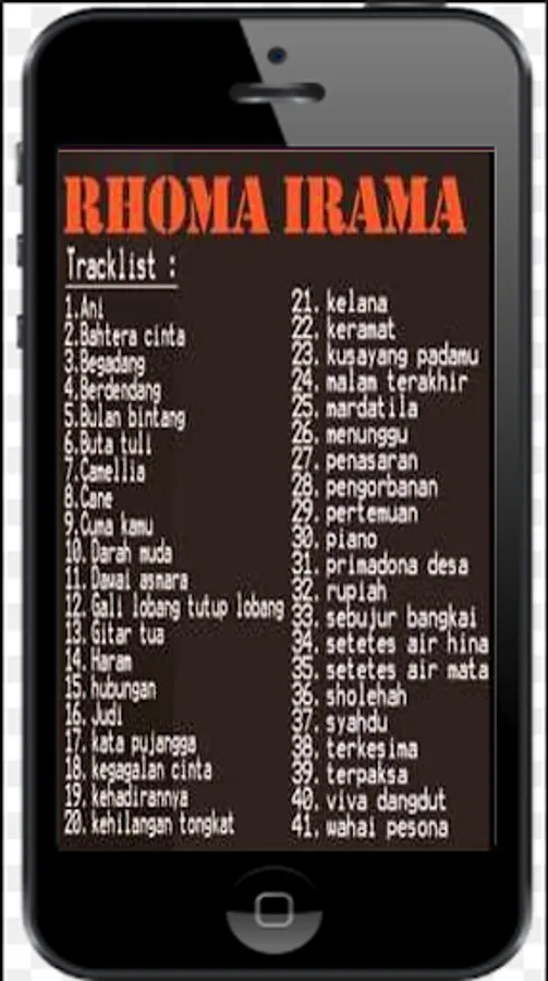 aplikasi ini berisi kumpulan lagu dari si raja dangdut Rhoma Irama yang populer dan terlengkap, bagi anda penggemar dangdut dan rhoma irama ini sangat cocok untuk menggunakannya yang diringkas untuk mp3.