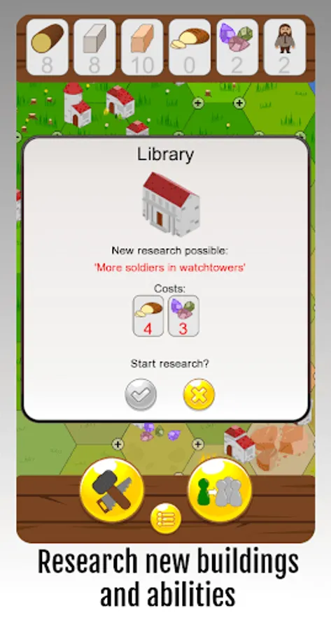 New buildings and military abilities can also be researched in the town library.