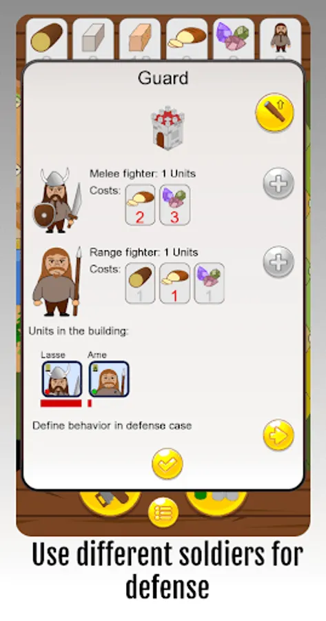 At the beginning you have to get the desired resources as fast as possible. Because your vikings are not alone. Depending on the level, there are several enemies who claim this area just like you do. Therefore decide which of your watchtowers should be equipped with soldiers. These are necessary to defend your area or to attack your opponent and weaken him sensitively.
