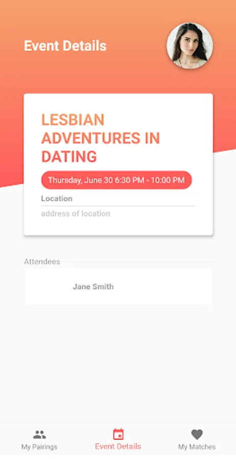 App to accompany Lesbian Adventures in Dating events.