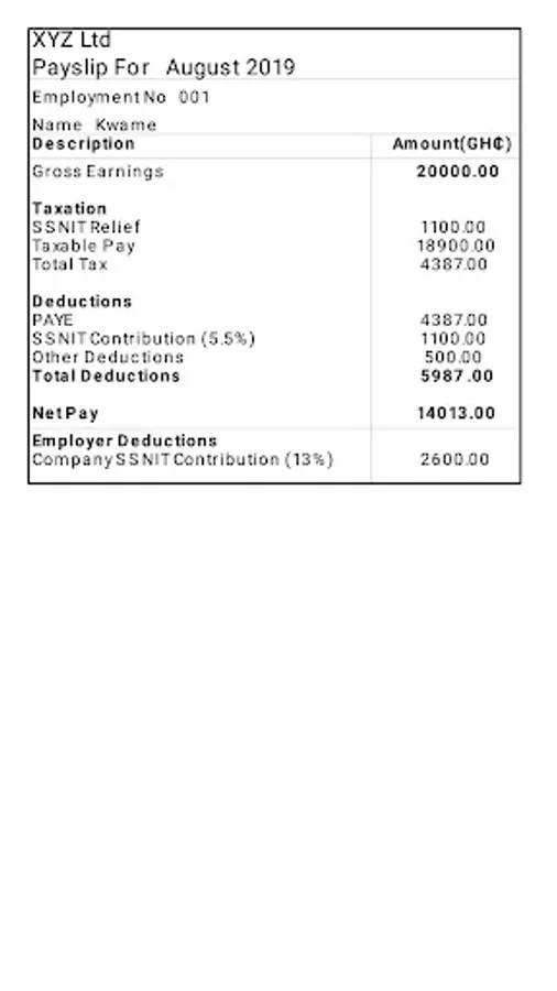 Welcome to the app that enables the user to calculate and generate a payslip based on the latest Ghana Revenue Authority (GRA) tax rates. The app also enables the user to share/email the payslip generated in pdf format.