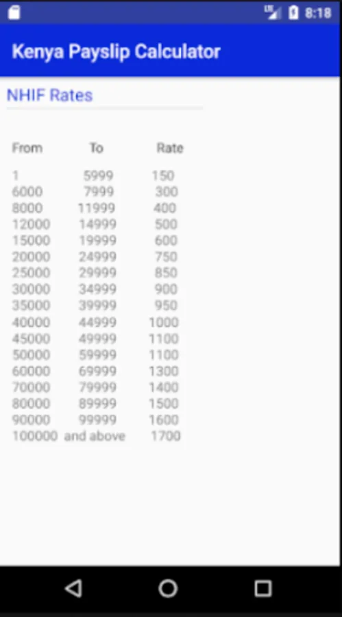 There is also a Net pay to Gross taxable pay calculator. You can also view the PAYE rates and NHIF Rates applicable.