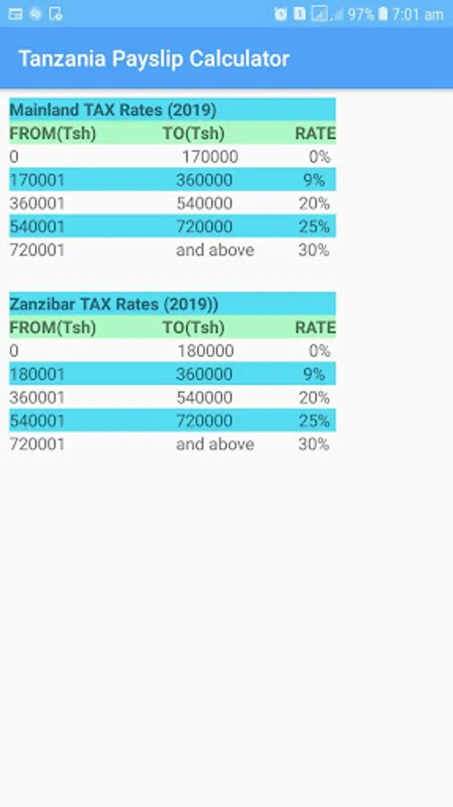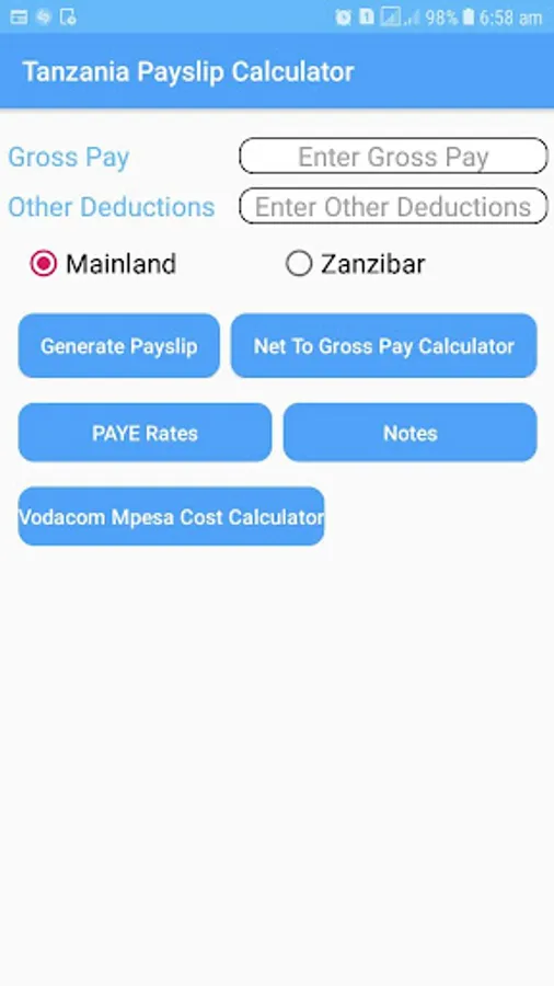The Mainland and Zanzibar have different tax rates which is also taken into consideration when the user is using the app.