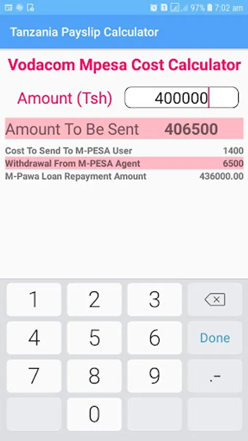 The app also has the Vodacom M-PESA cost calculator that enables you to calculate sending charges at the tap of a button easily and conveniently.