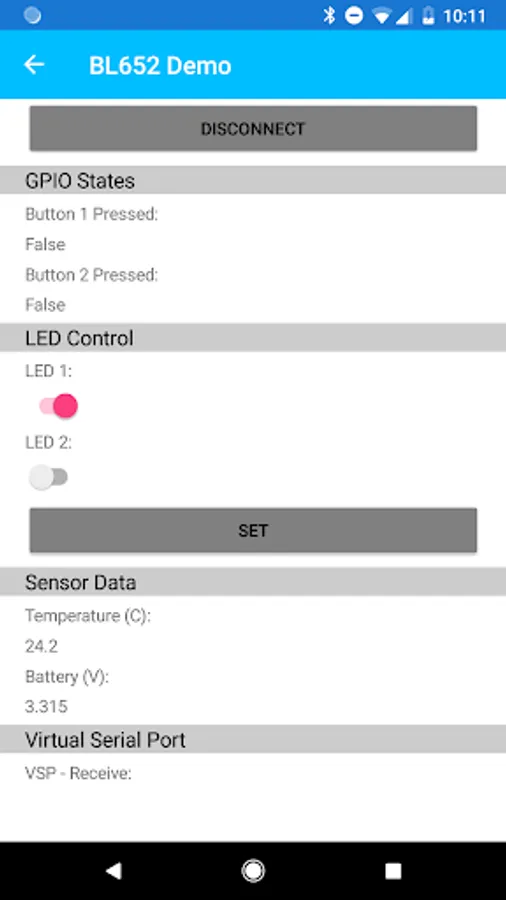 This application is intended to demo features of Laird's BL652, SaBLE-x, and uB1 modules. In addition, it can be used to OTA update the Laird BL652.