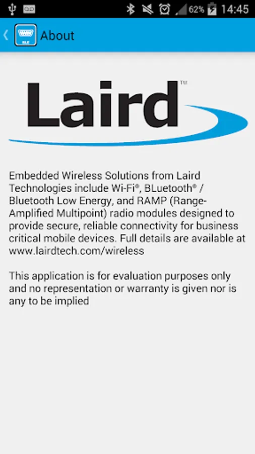 The Laird BL600 Serial App allows text data to be sent from an Android device to a Laird BL600, single-mode BLE module and back again. This application can be used to remotely control the device through the use of AT commands.