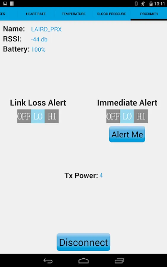 This app includes a heart rate monitor, blood pressure monitor, temperature sensor and a proximity sensor. The BL600 provides for a wide array of potential applications beyond just these four applications. This app is fully compatible with other Bluetooth Smart Ready devices which utilise these profiles.