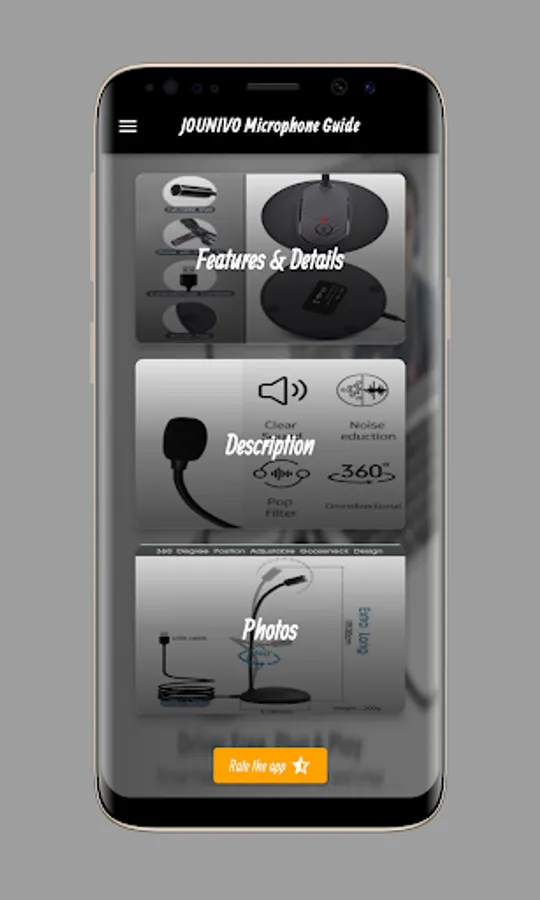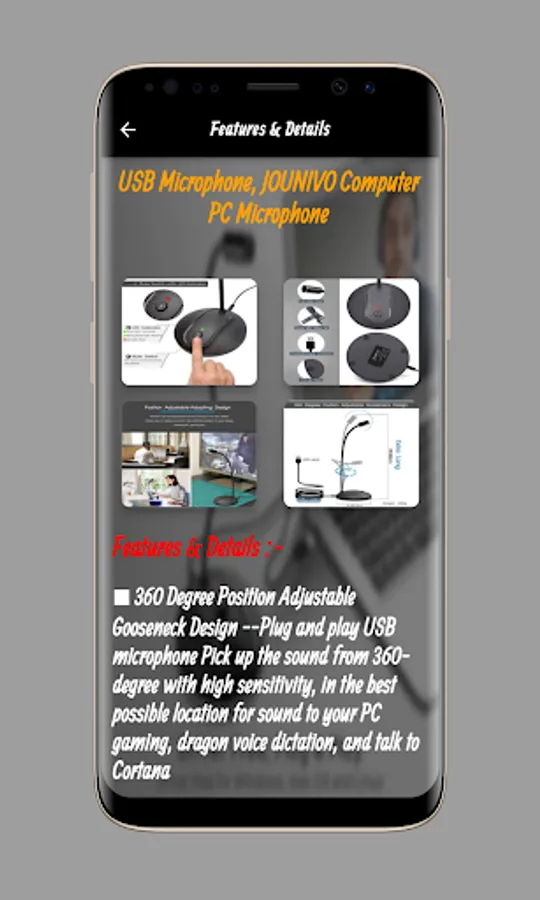 The JOUNIVO Microphone Guide application contains many information and features of JOUNIVO Microphone, which you can get clearly and easily. Through the JOUNIVO Microphone Guide application, you can watch a video of JOUNIVO Microphone, which gives you the opportunity to see the external shape and features JOUNIVO Microphone Guide has many different features including 360° adjustable Gooseneck design Plug and play USB microphone Pick up 360° sound with high sensitivity, in the best possible place for sound for computer games, dragon voice dictation, talk to Cortana
