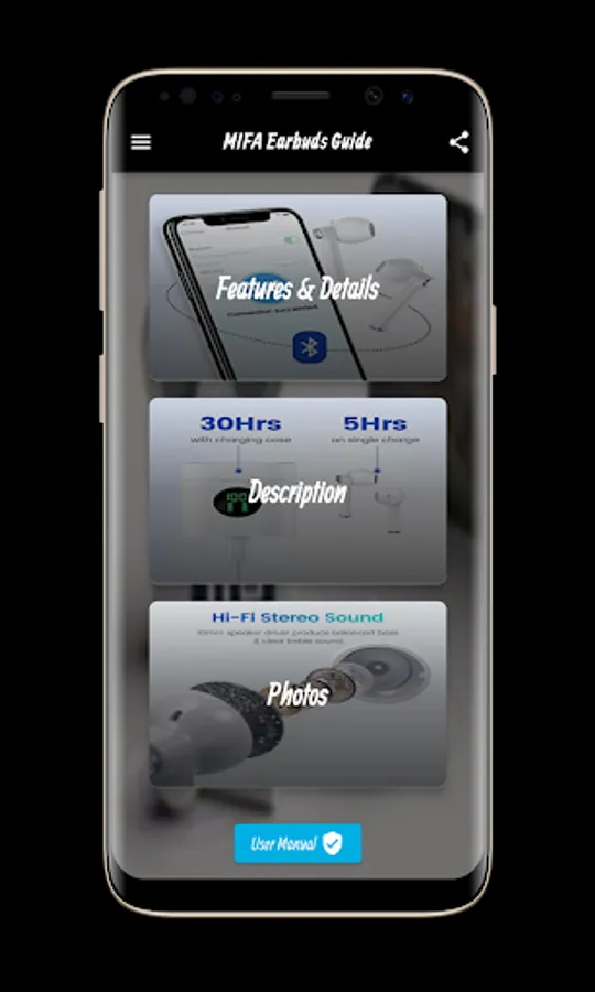 MIFA Earbuds Guide app contents