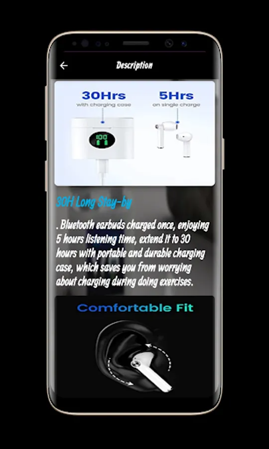 You can also now, through the MIFA Earbuds Guide application, obtain a manual for using the MIFA Earbuds, which you can view through the application, which is provided to you clearly and easily to learn through it how to use the MIFA Earbuds. You can also see the description of the product, in which all The features and features of MIFA Earbuds that make it distinct from other similar products in the same field, such as Power Display and 30 H Time: Features with a Smart LED digital display, you can easily know the battery consumption on both the Bluetooth headphones and the charging status So you can master the best time to charge it