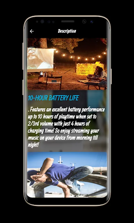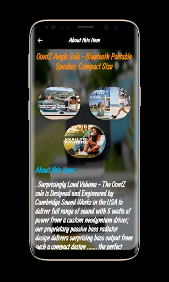 You can also now, through the OontZ Angle Solo Speaker Guide application, obtain a manual for using the OontZ Angle Solo Speaker, which you can view through the application, which provides you with a clear and easy way to learn through it how to use the OontZ Angle Solo Speaker, and you can see the product description Which showcases all the features and features of the OontZ Angle Solo Speaker that make it stand out from other similar products in the same field, and one of these features is an incredible 100-foot Bluetooth range - play up to 100 feet away from your device
