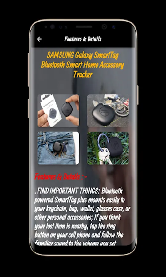 Also, the SAMSUNG Galaxy SmartTag Guide application contains many features of the SAMSUNG Galaxy SmartTag, which is the product of jealousy of the same type, and of these qualities that SAMSUNG Galaxy SmartTag has to find: If you lose your items, just run the SAMSUNG Galaxy SmartTag Guide Application, find out where it was last time. SAMSUNG Galaxy SmartTag Guide
