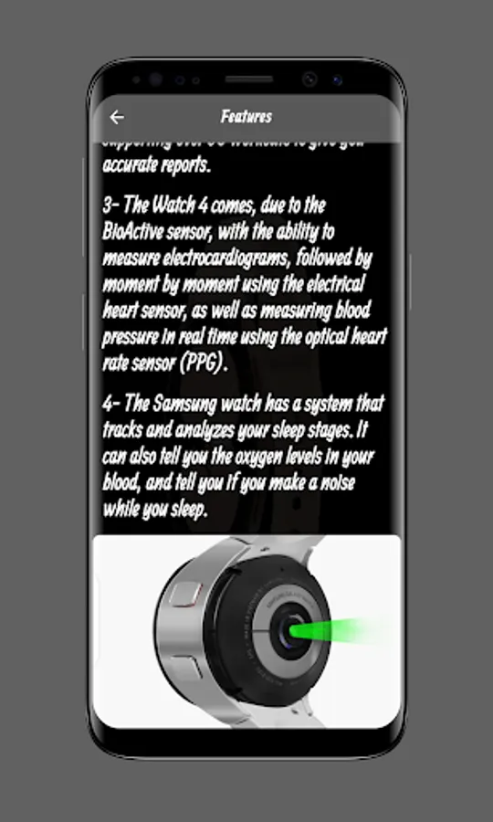 The SAMSUNG Galaxy Watch 4 Guide application contains many information and details about the SAMSUNG Galaxy Watch 4, which you can view easily and clearly. It provides a wide range of information, features and details that are included in the SAMSUNG Galaxy Watch 4