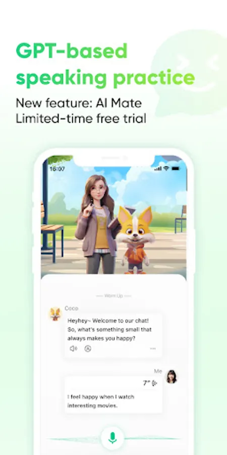 LingoChamp has launched the "AI Mate". This is an AI voice conversation which based on GPT technology. Now two languages are available: English and Korean. You must try it for the following reasons: