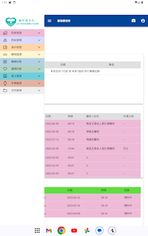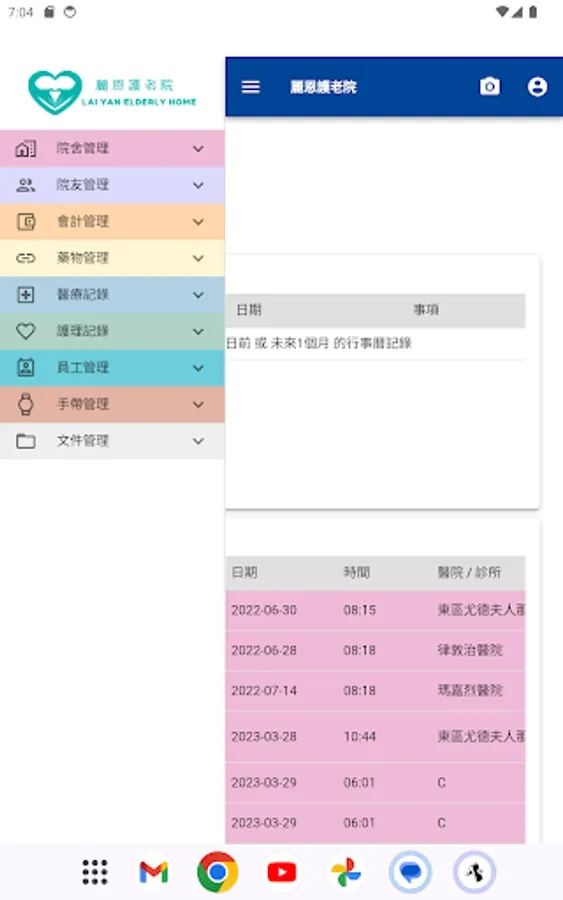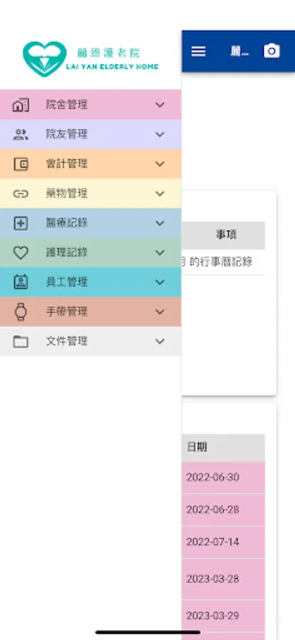 Lai Yan Elderly Home's management app for insiders.