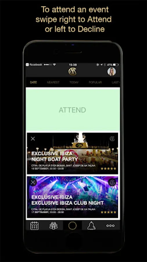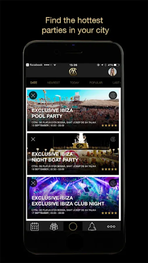 - Find exclusive parties: you choose which parties you to attend; attend the event in the app; get chosen.