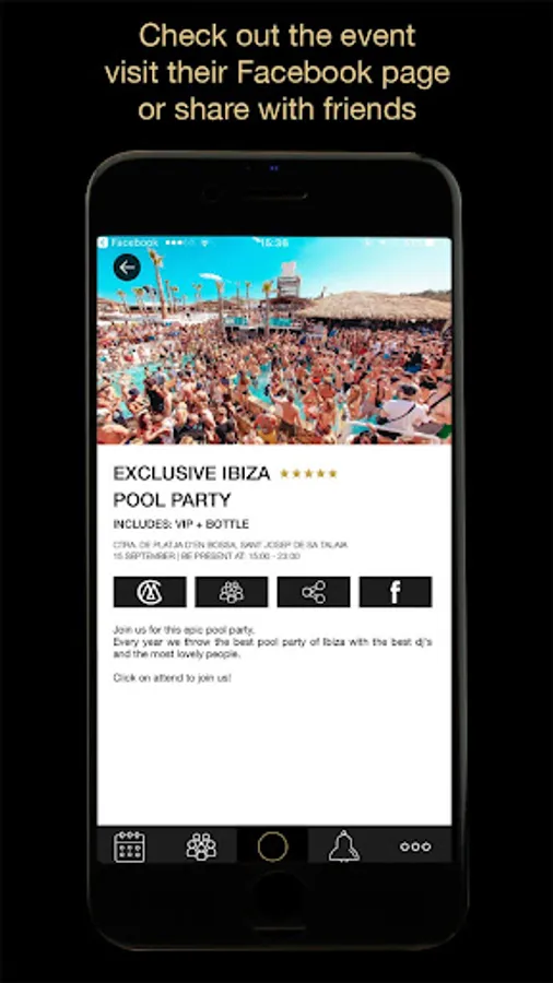 - Connect with your friends: find your friends; invite them; attend an event as a group; party together.