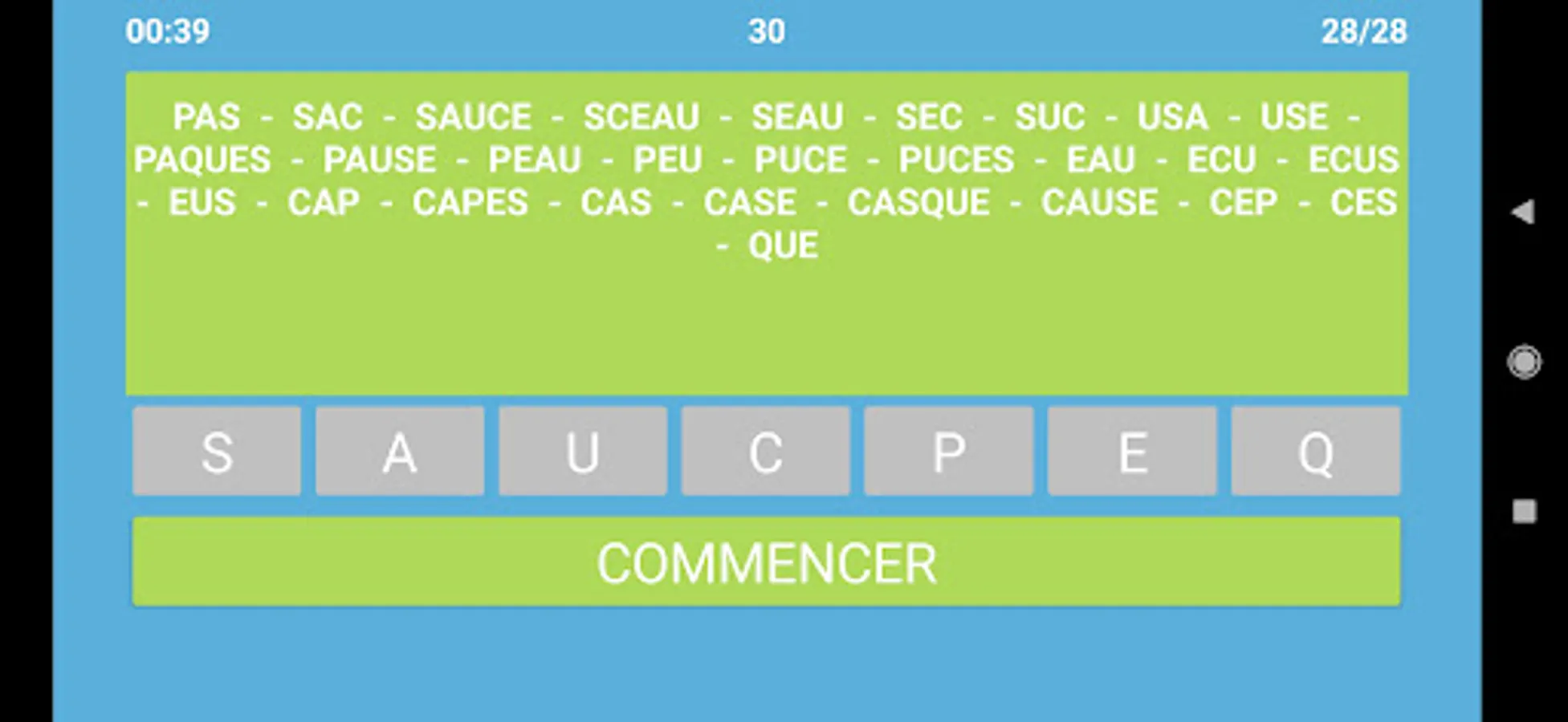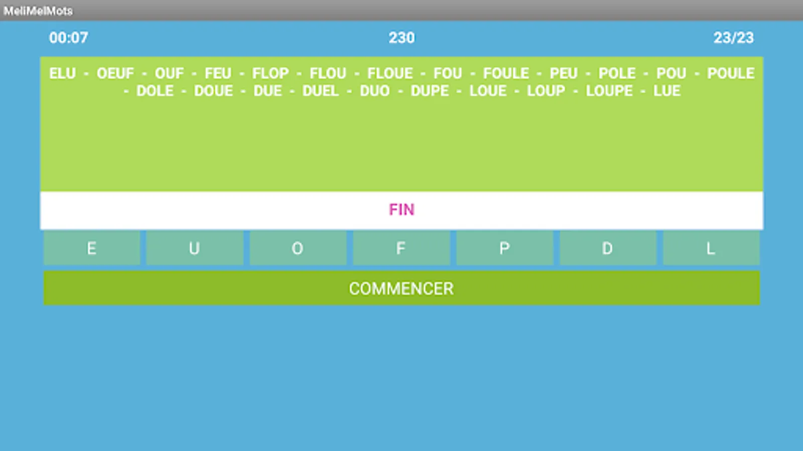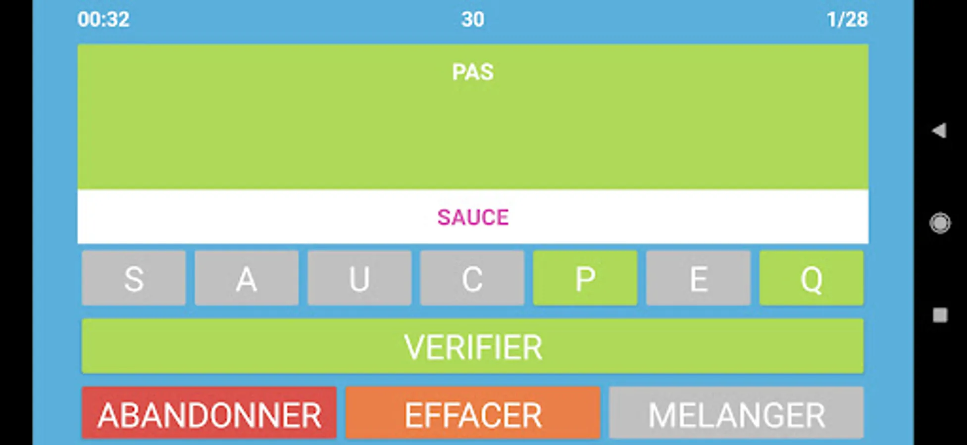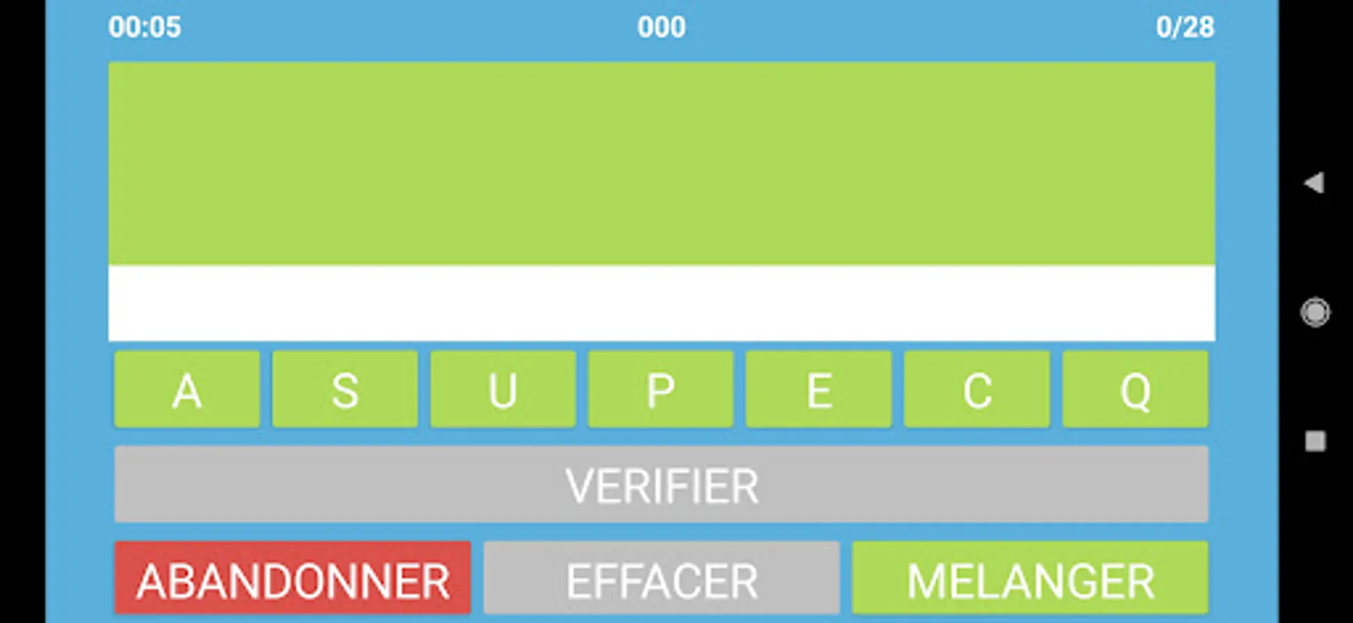 A classic letter game: Try to discover all the possible words with 7 randomly chosen letters.