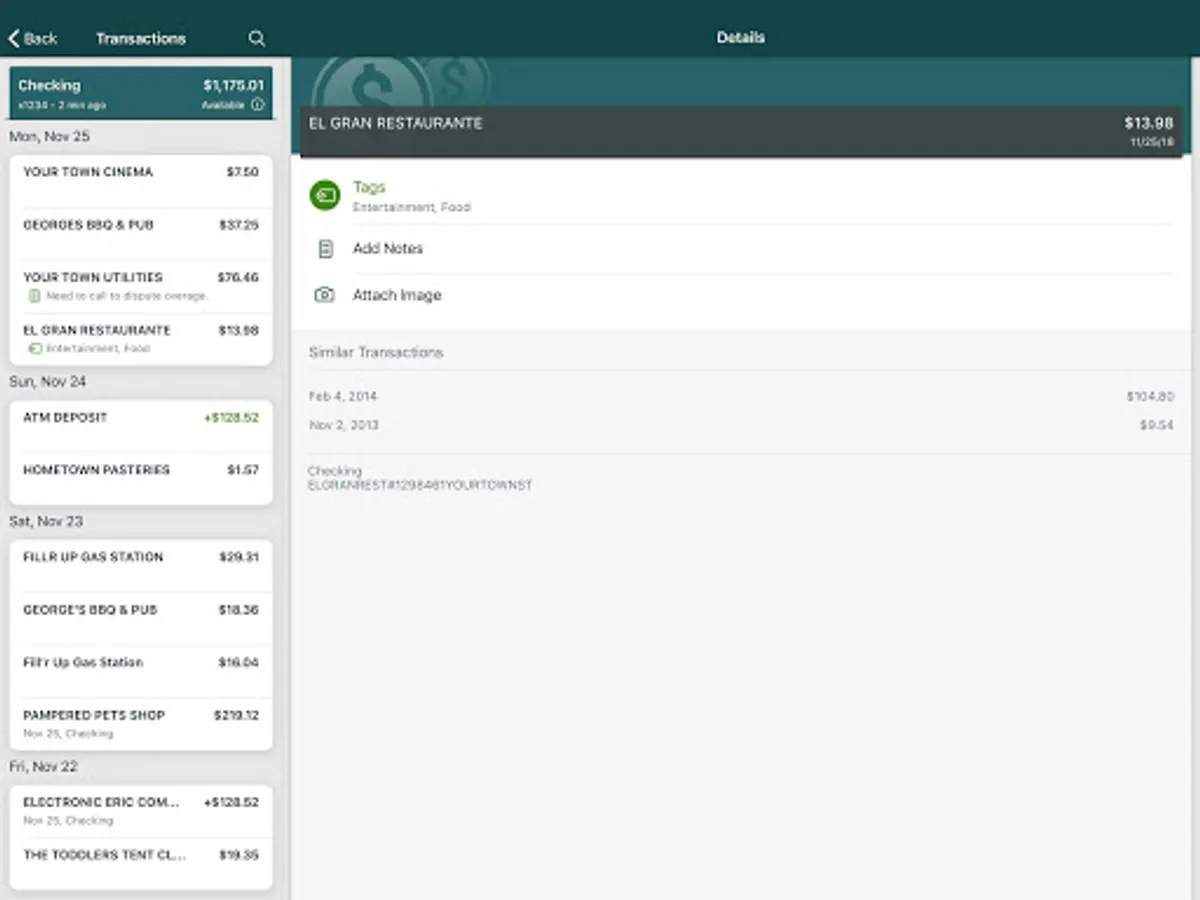 Keep your transactions organized by allowing you to add tags, notes and photos of receipts and checks.
