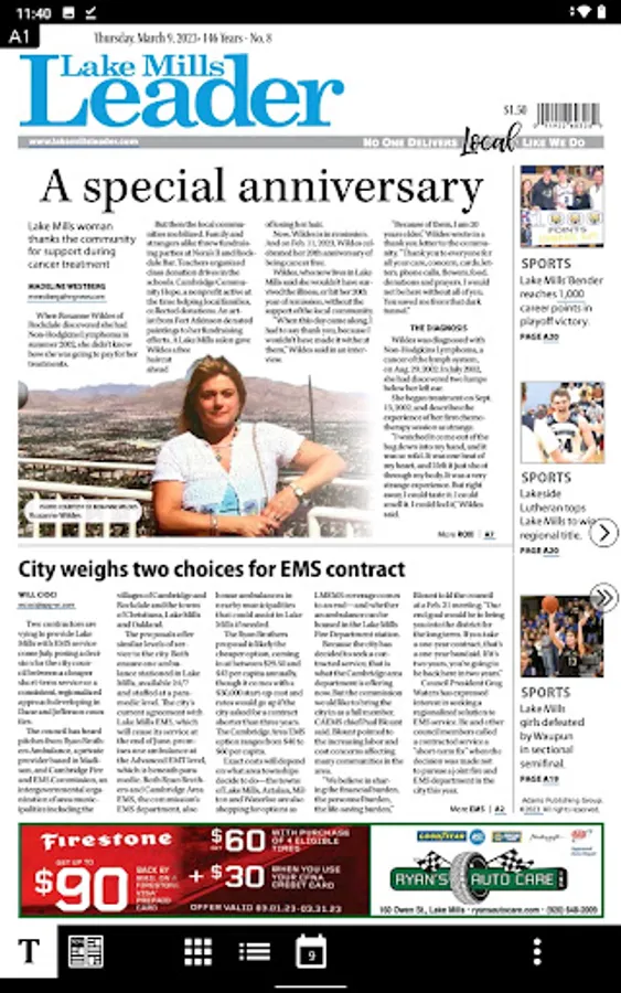 This is a digital replica of the printed Lake Mills Leader. This app is part of your all access membership. If you have questions about using the app please contact us at print.subscriptions@ecpc.com or call 608-764-0299, press #1