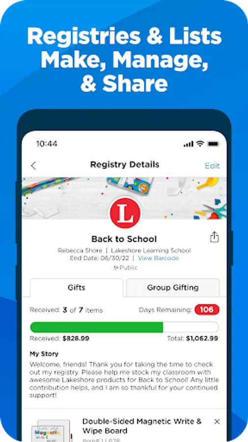 - Manage registries and lists. Create, update and find other registries and lists from your phone.