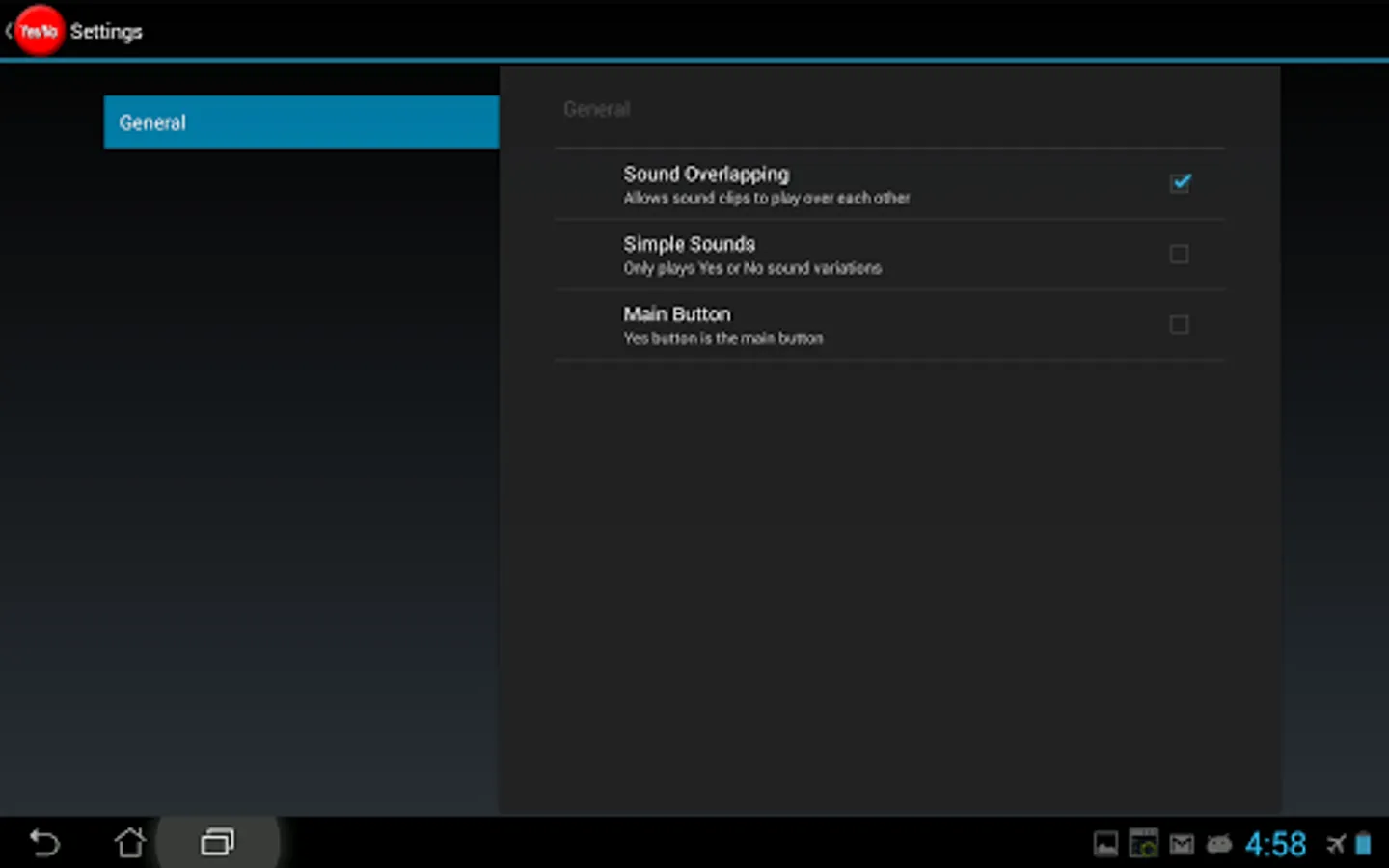 Includes the ability to allow overlapping sounds which will allow for ultimate YES / NO CARNAGE! Tap the button as fast as you can!