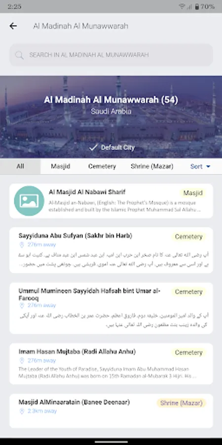- Nearby sorting feature shows all nearby ziarat