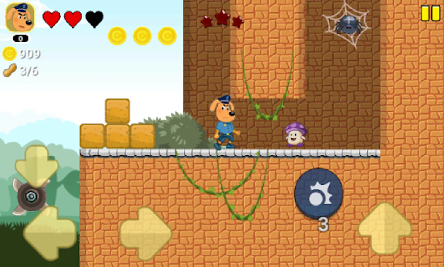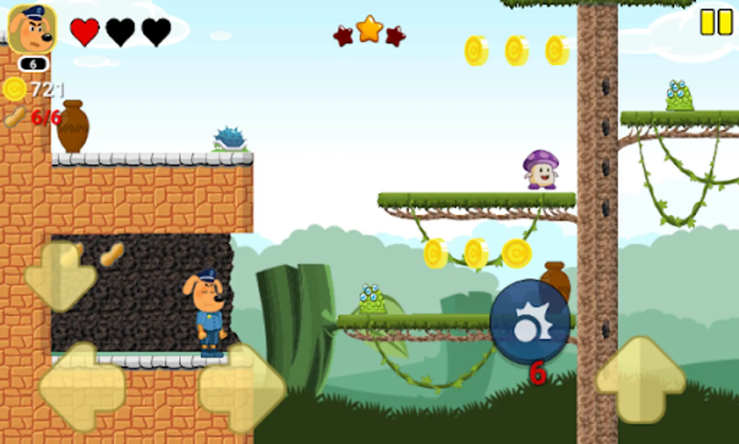 In the forest adventure game, you will try to perform tasks according to the instructions presented in challenging levels. By collecting gold in levels, you can customize your sheriff costume labrador character. To destroy an enemy, you must jump on it and attack it. To complete the level correctly, you must collect stars from secret locations. What you need to be aware of is that there are a total of 3 permissions, and if the permissions are used up, you will have to start the level from the beginning.