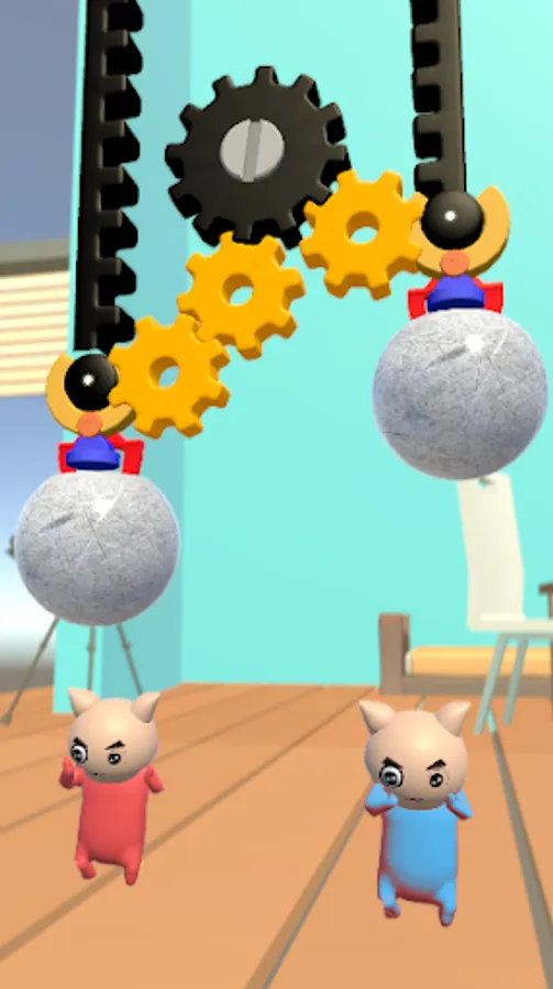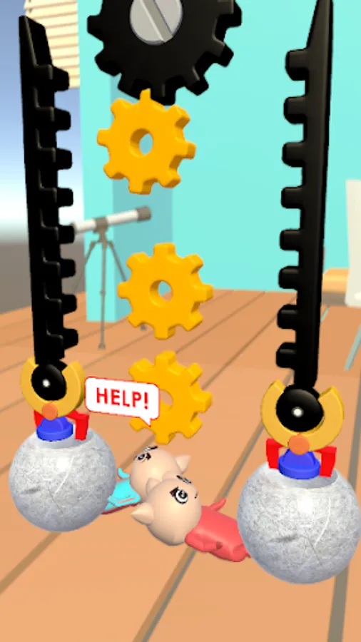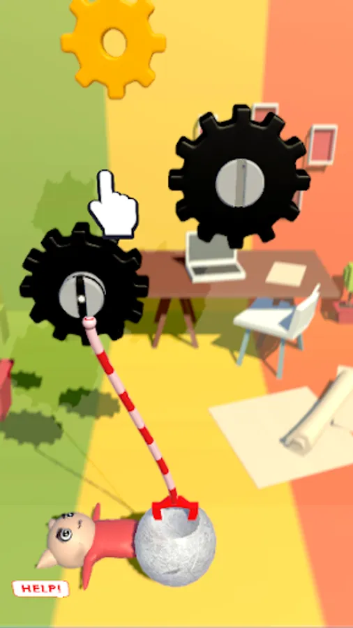 Simple gameplay: Each level starts with a person trapped under a rock, with all kinds of mechanisms and parts. Some are movable and some are fixed. Your job is to figure out how to use them to lift rocks and erect people.