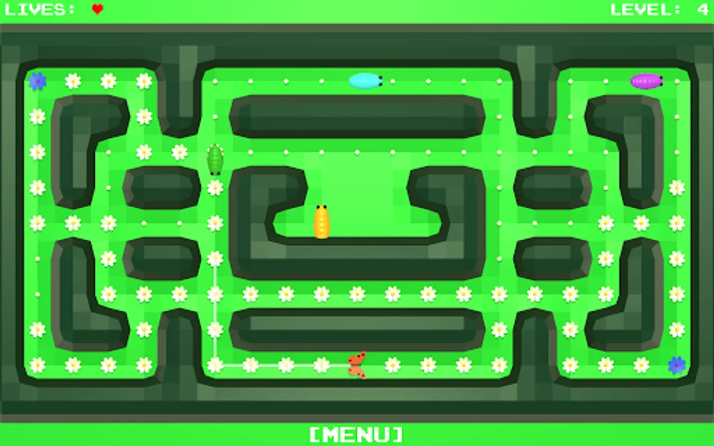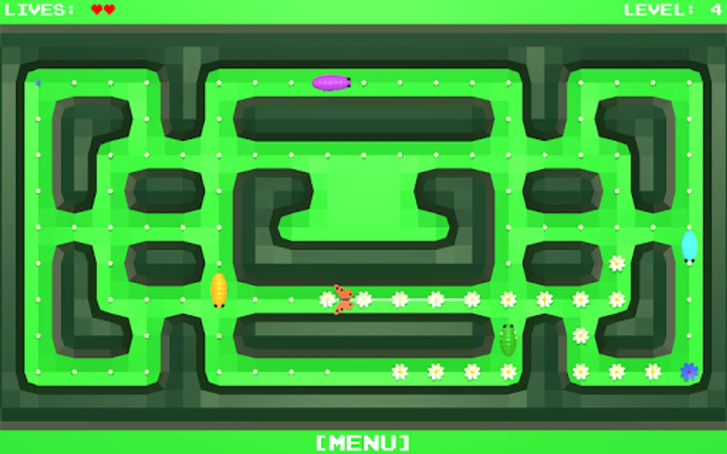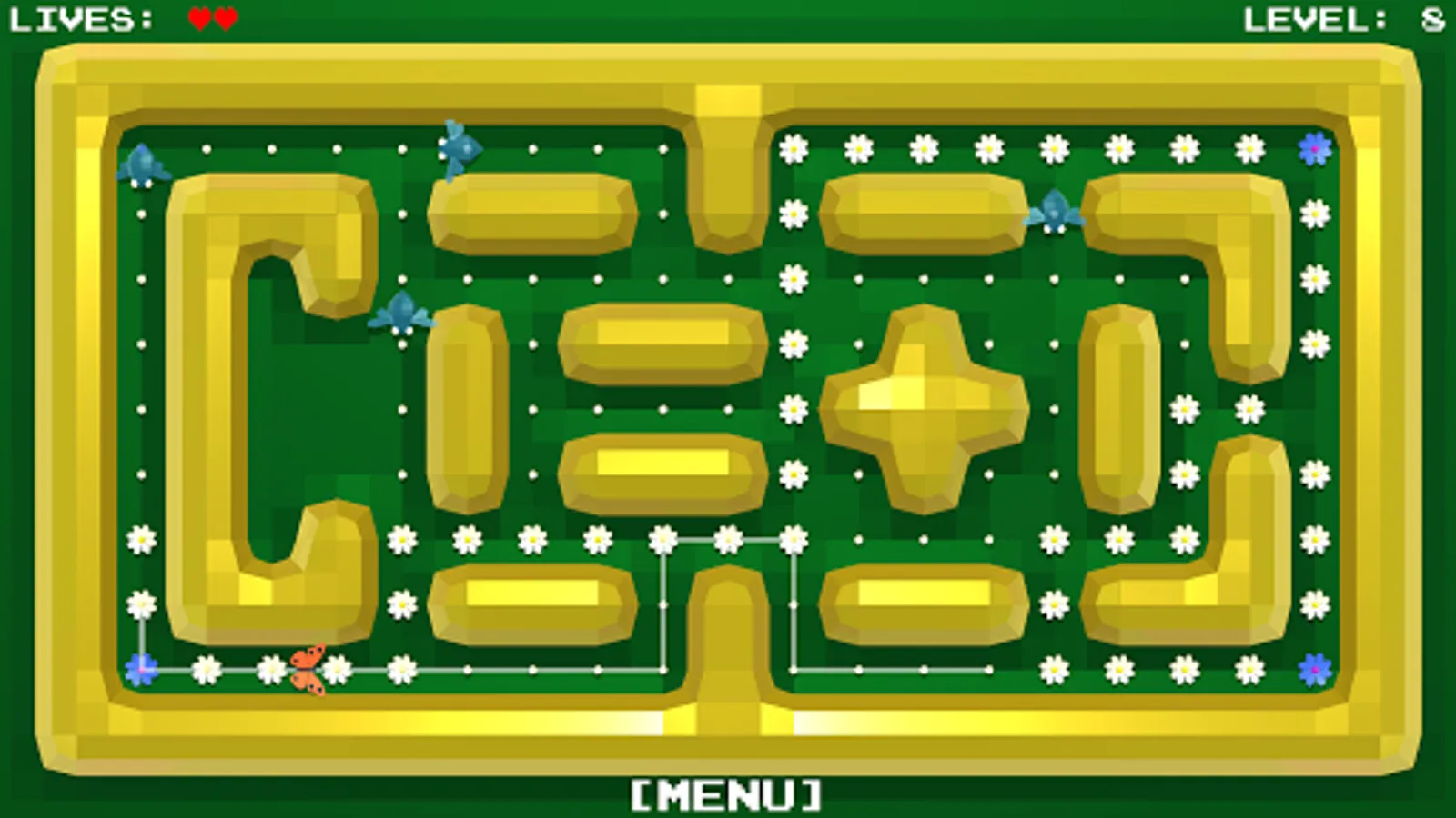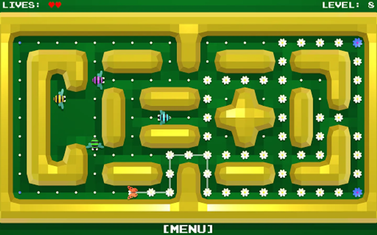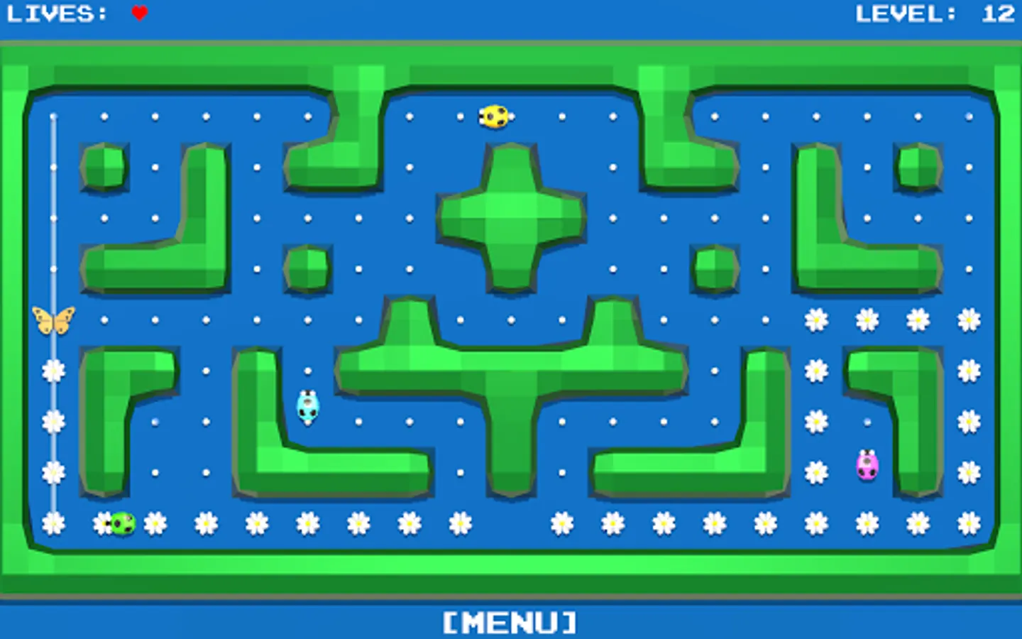 All the flowers in the meadow should blossom. You control the butterfly, which you routeing to the unblown flowers.