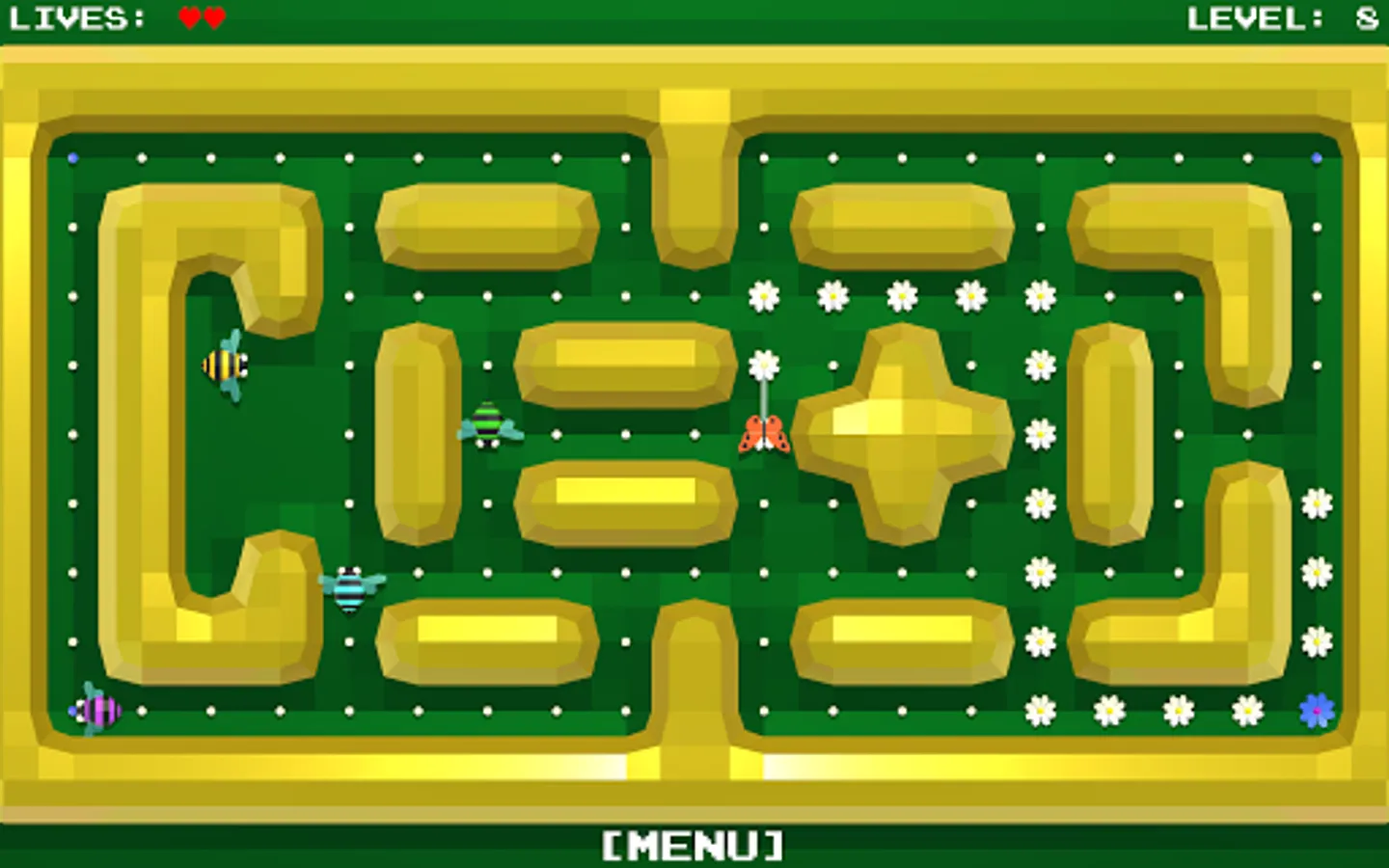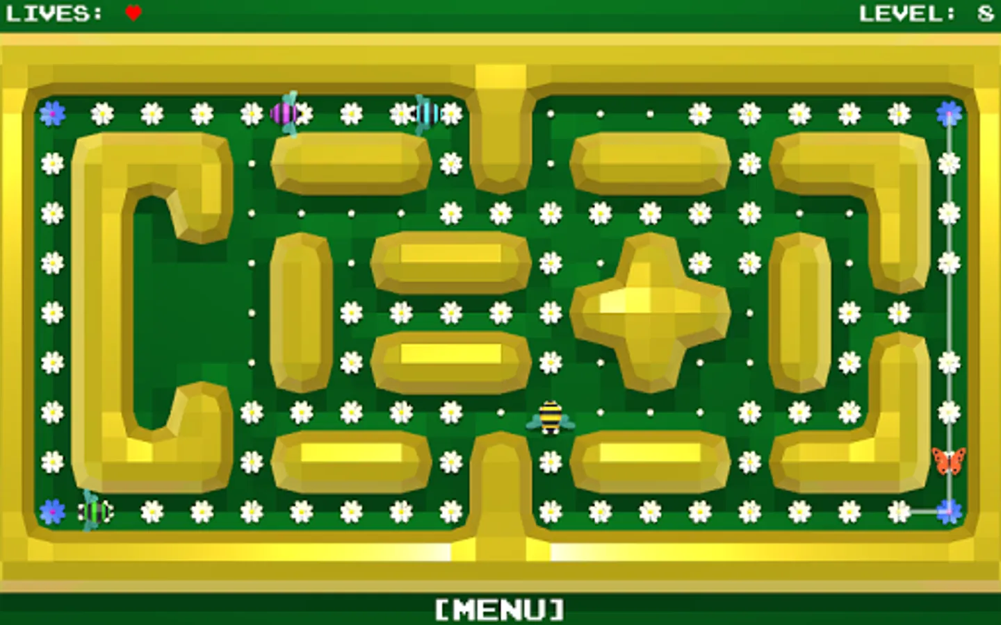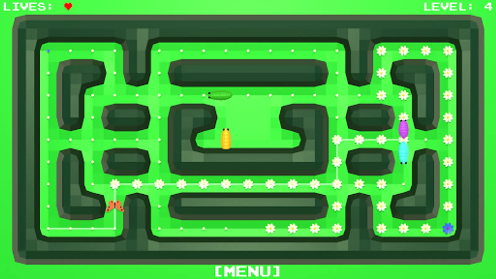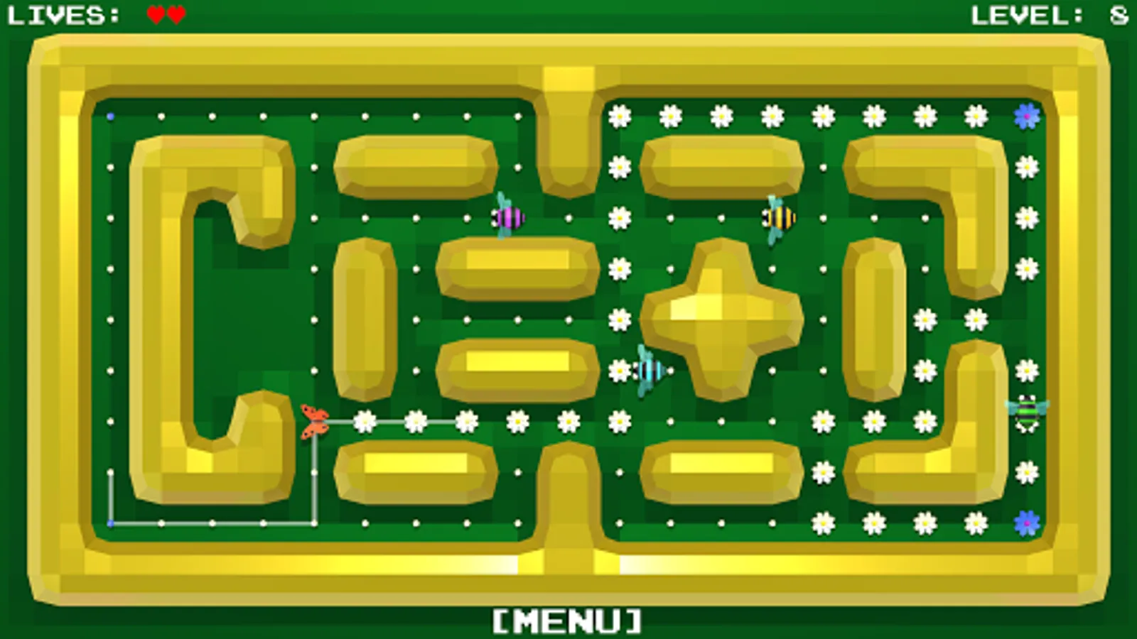 All the flowers in the meadow should blossom. You control the butterfly, which you routeing to the unblown flowers.