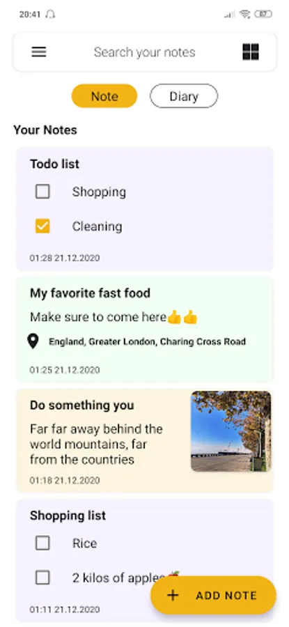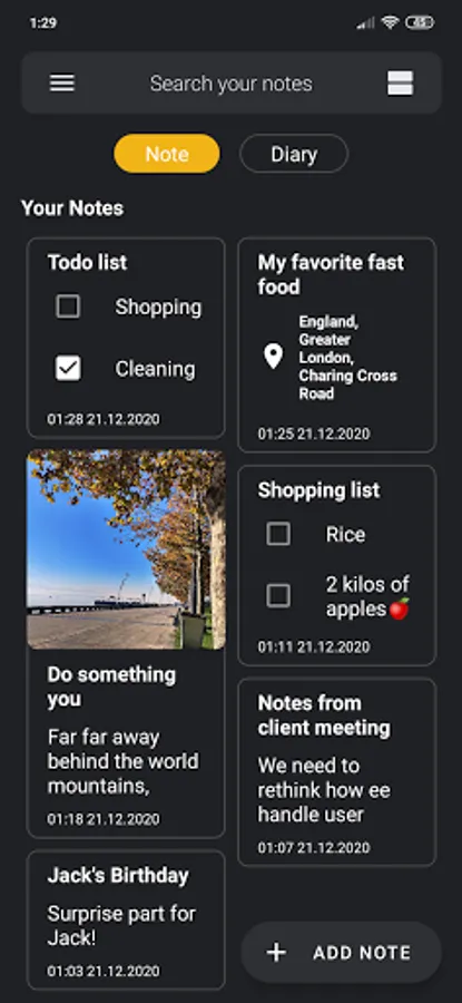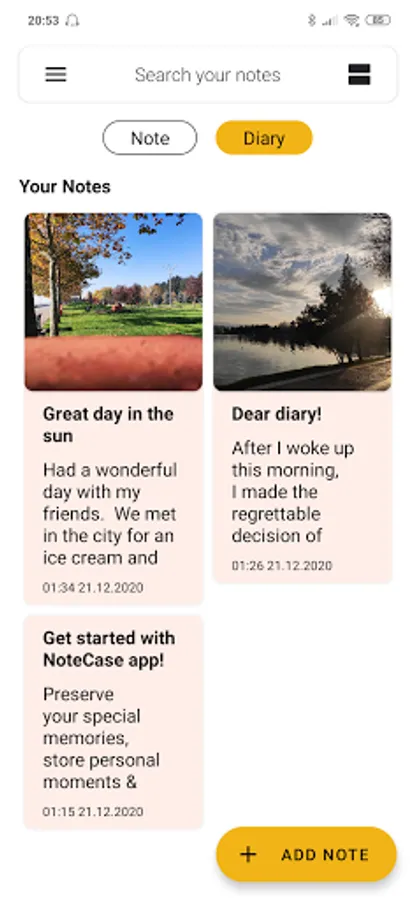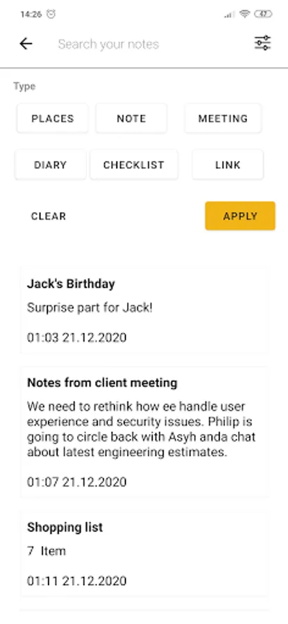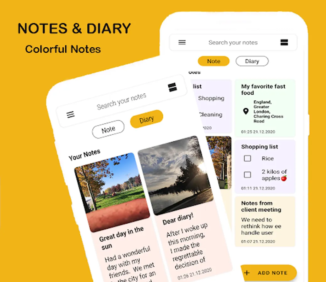 Quickly save and categorize your notes. Easily add every moment of yours in a fast and practical way.