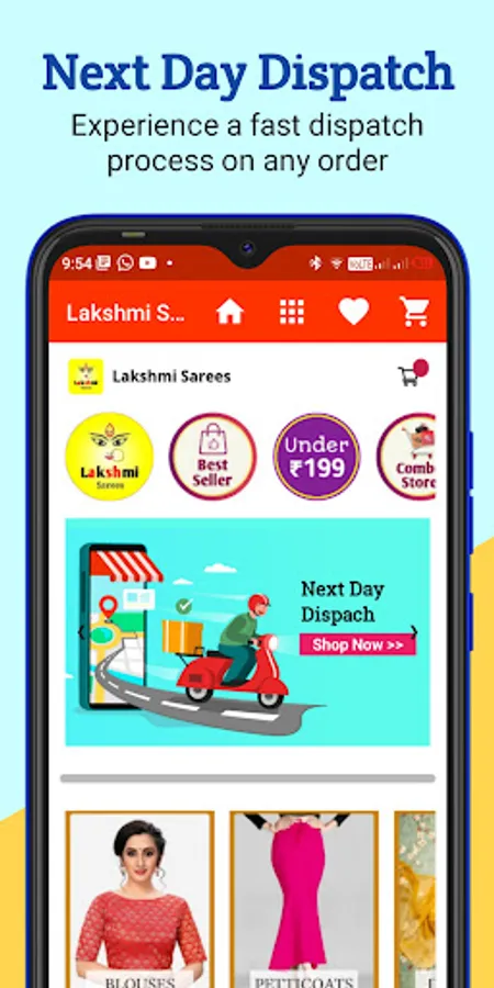 'Lakshmi Sarees' App comes with a user friendly interface where user can easily select, filter the product by color, size, type, etc.