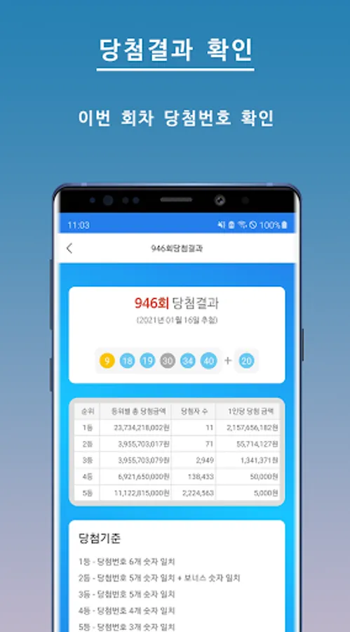 You can check information on the winning number of the last round, total winning amount by rank, number of winners, and winning amount per person. Also, for those who are new to lottery, there is information on how to win lottery.