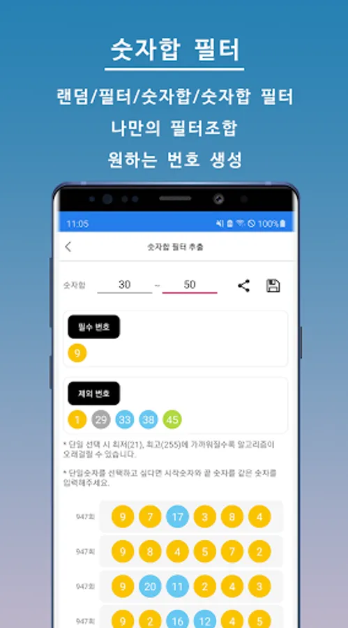 Without a filter, only numbers from 1 to 45 are randomly extracted and the next lottery number is provided for free.