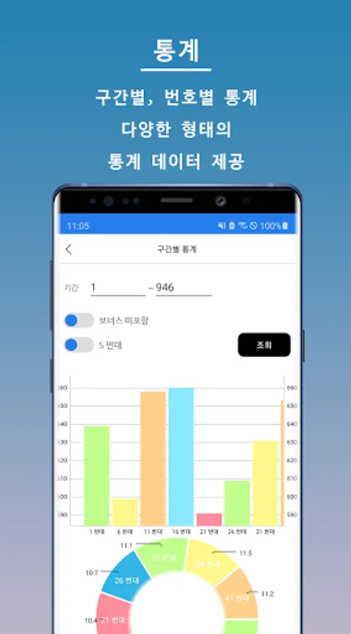 You set the round, and statistical information is provided for each section of the round you set. If you apply a filter on whether it is in the 5th, 10th, and with or without bonus numbers, the graph provides information on how many numbers were out for that section.