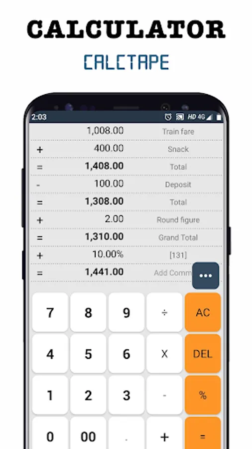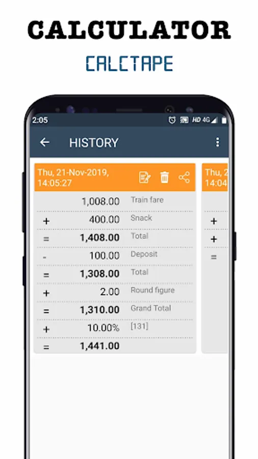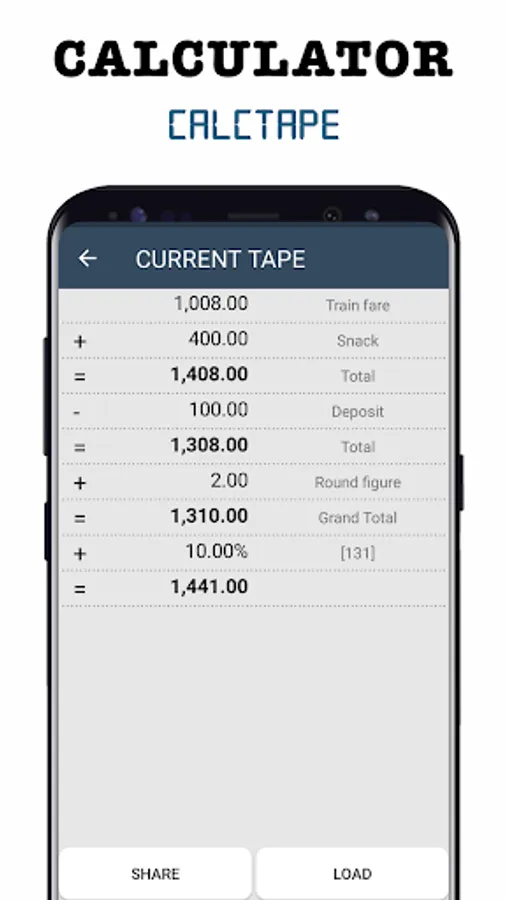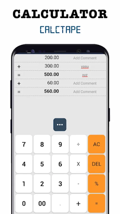 Calculator with Tape - CalcTape is free android tool for doing calculations with comment for each digits,store history of your calculations, share your calculation and many more all funcationality in single solution whose named Calculator with Tape - CalcTape.