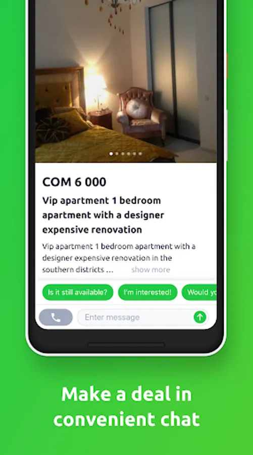 If you’re looking to rent an apartment or room, look no further – download the lalafo marketplace, select the category you need, your city, and the price range. If you don’t want to contact realtors, then you shouldn’t. Easily find apartments for rent directly from the owners by filtering the ads. Look through the sale and rent offers for commercial real estate, land, houses, and garages. Add the ads you like to your favorites and track price changes. Save your time and nerves looking for apartments on the market in Bishkek with the lalafo online shopping app.
