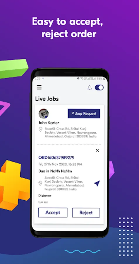 +You must accept the order when you receive order, should you receive an alert and accepting orders means you have 60 mins to finish the job from pick up location to the store in real time.