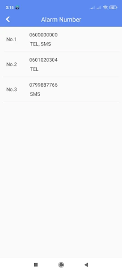 - Define the telephone numbers to be contacted by Call / SMS in the event of an intrusion