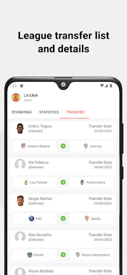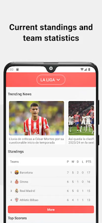 You can instantly access the details of the teams in La Liga, the league standings, the matches played and to be played, their statistics and transfers.