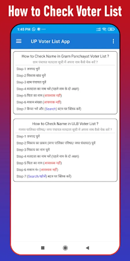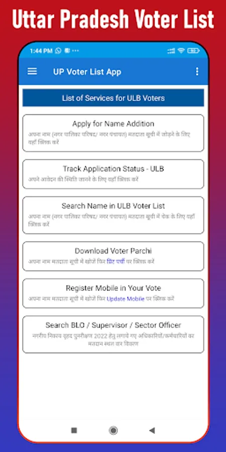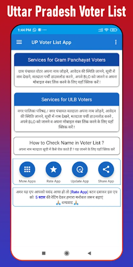 In this (UP Voter List App) app users can check their name in voter list of Uttar Pradesh state and also download the voter list in their mobile. This app can be called by some other names like UP Voter list app, matdata suchi and electoral roll app.