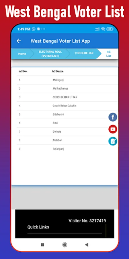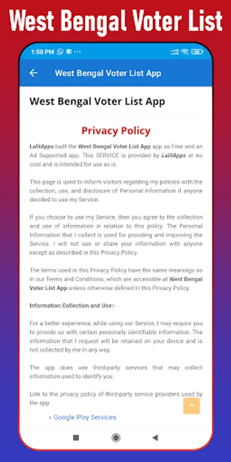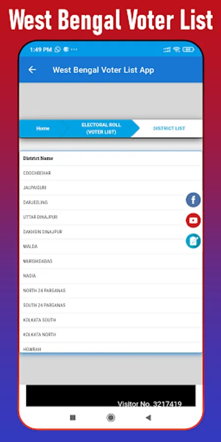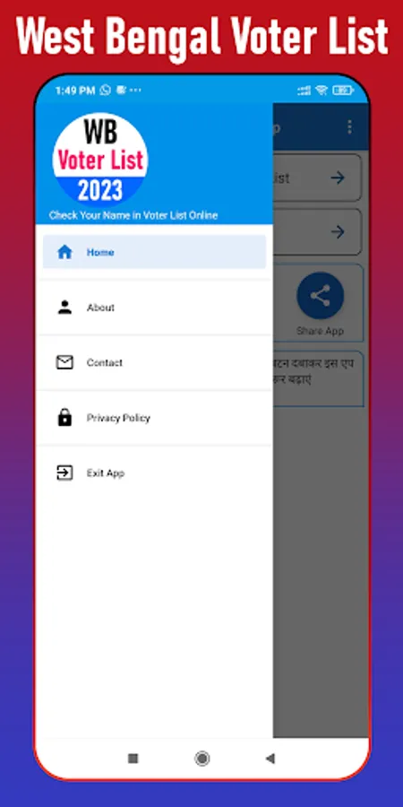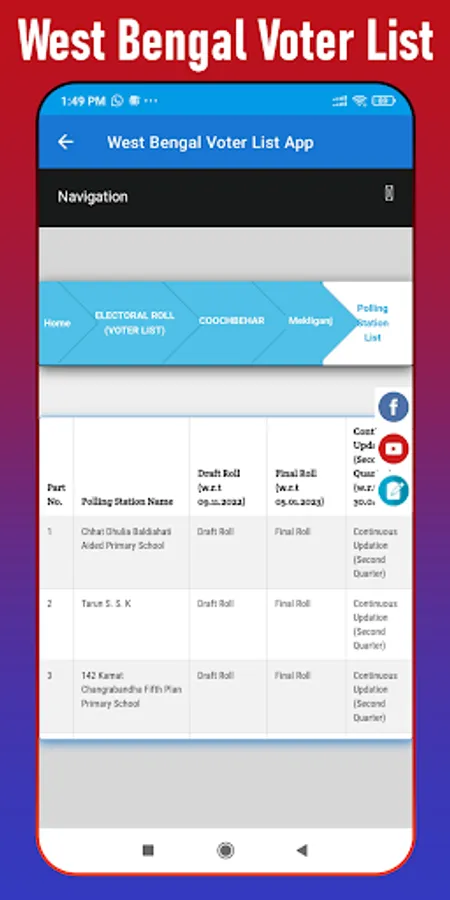 In this (West Bengal Voter List App) app users can check their name in voter list of West Bengal state and also download the voter list in their mobile. This app can be called by some other names like WB Voter list app, matdata suchi and electoral roll app.